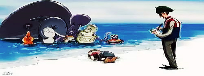 潔白的雲朵點綴著蒼穹,遠方的山巒,綠意盎然,和一片湛藍連成地平線,微風夾雜鹹味,輕撫臉龐,一位敘利亞小男孩趴在沙灘,將戰爭的恐懼拋到九霄雲外,享受久違的日光洗禮與海水的灌溉,體驗世界的美好,但這一刻,卻都失去了,在痛苦中,死神帶走這條幼小生命,一條黑暗的道路,終於走到盡頭,一切都結束了。